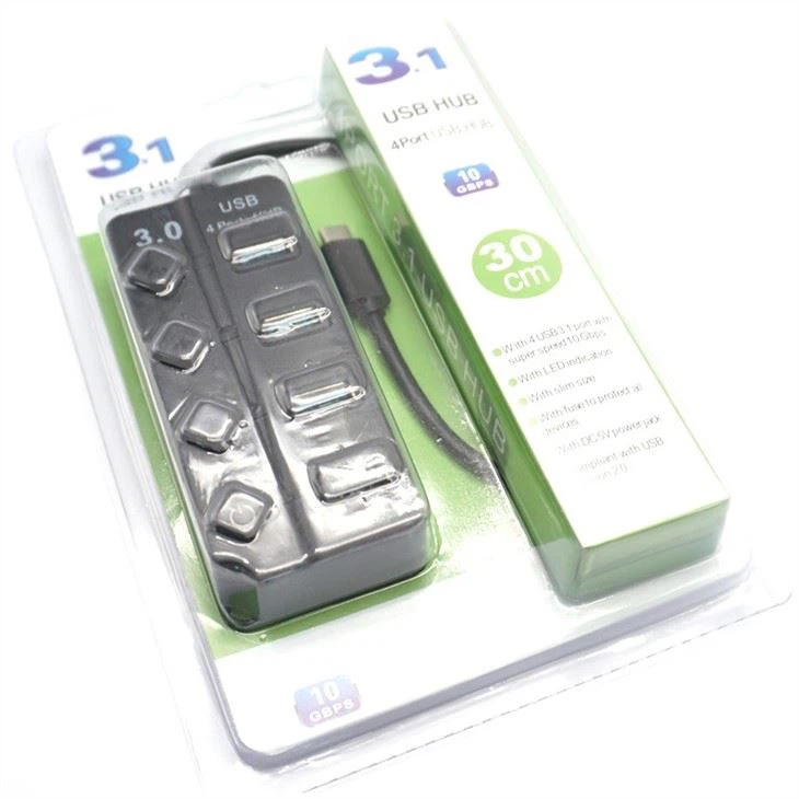 4 or 7USB ports with individual on/off switch and LED power indicator